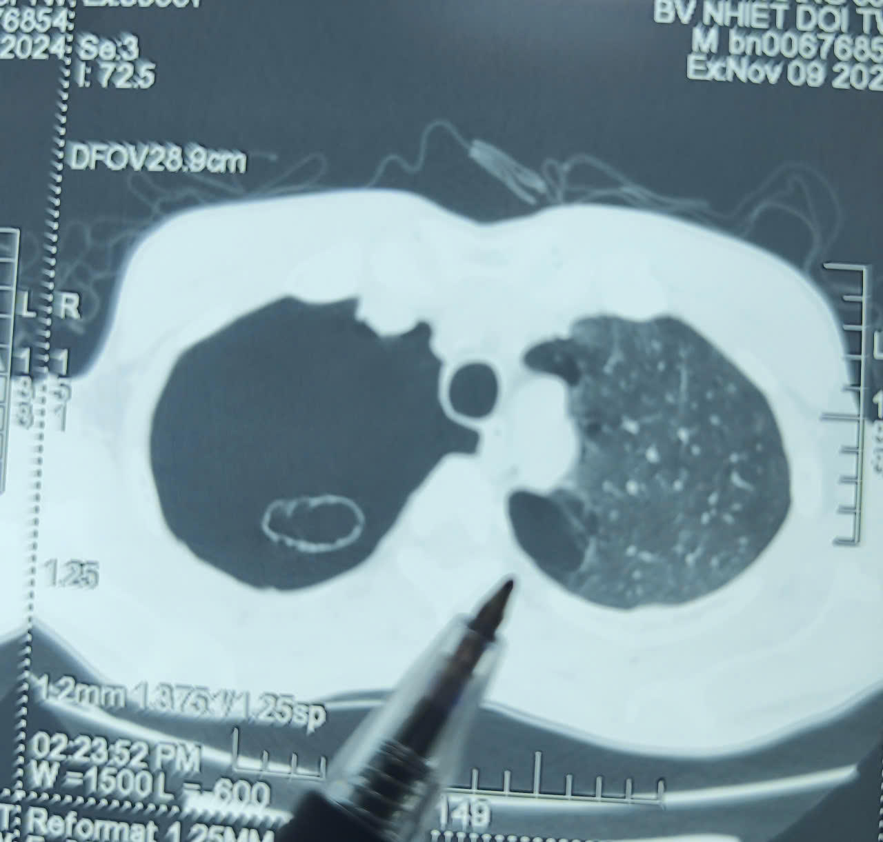 BSCKII Khiếu Mạnh Cường, bác sĩ chuyên ngành Ngoại - Lồng ngực, Khoa Ngoại Gan mật và Ung bướu, Bệnh viện Bệnh Nhiệt đới Trung ương cho biết: “Phổi của bệnh nhân có nhiều bóng giãn, phế nang có nhiều bóng khí. Trên bề mặt nhu mô phổi có nhiều điểm yếu cần phải tiến hành phẫu thuật nội soi lồng ngực nhằm tránh bị tái phát tràn khí màng phổi lại”.