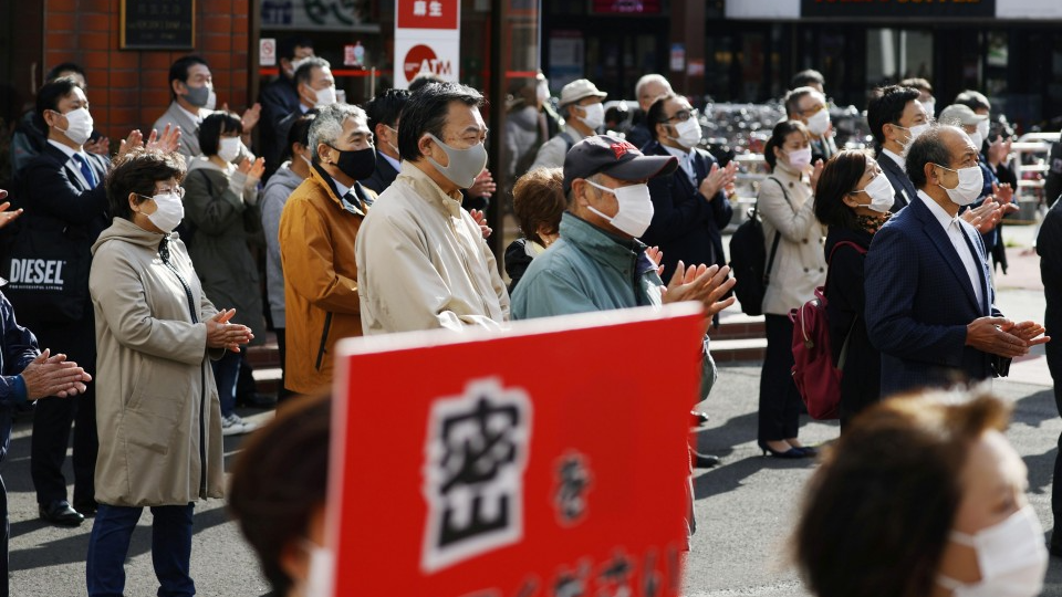 Cử tri lắng nghe một chính trị gia phát biểu ở Sapporo, Hokkaido, vào ngày 19/10/2021 trong chiến dịch vận động cho cuộc tổng tuyển cử ngày 31/10 của Nhật Bản bắt đầu cùng ngày. Ảnh: Kyodo |