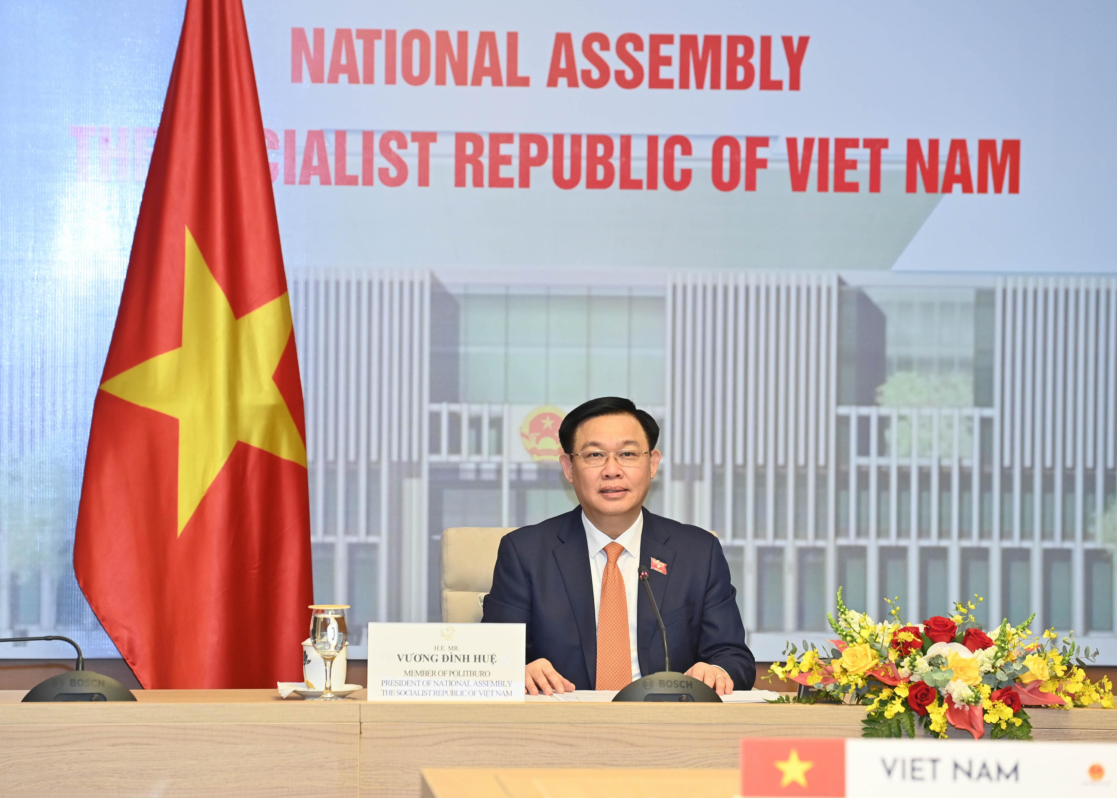 Chủ tịch Quốc hội Vương Đình Huệ nêu rõ, Quốc hội Việt Nam cam kết tiếp tục đẩy mạnh công tác xây dựng luật pháp để tạo môi trường thuận lợi cho nhà đầu tư trong và ngoài nước, hỗ trợ các doanh nghiệp, các thành phần kinh tế ổn định, khôi phục và phát triển mạnh mẽ sau đại dịch.