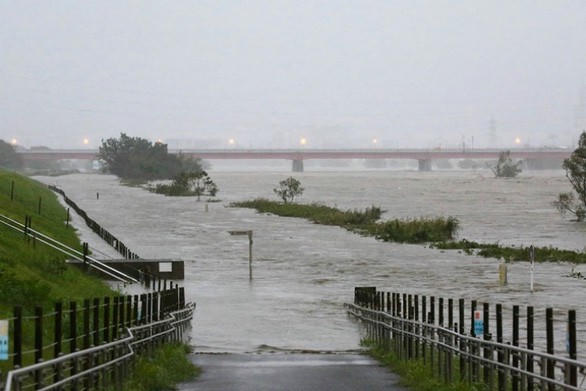 | Tuy bão đã ra khỏi Tokyo và các tỉnh khu vực Kanto, riêng khu vực sông Tama, của Tokyo do mực nước sông cao - Ảnh: AFP |
