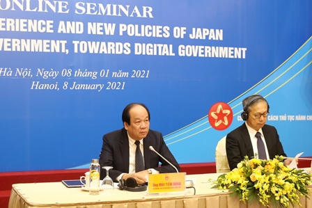 Ngày 8/1, Bộ trưởng - Chủ nhiệm văn phòng Chính Phủ Mai Tiến Dũng và Đại sứ đặc mệnh toàn quyền Nhật Bản tại Việt Nam Yamada Takio đồng chủ trì hội thảo trực tuyến “Chia sẻ kinh nghiệm và chính sách mới của Nhật Bản nhằm thúc đẩy phát triển Chính phủ điện tử, hướng tới Chính phủ số”. Điểm cầu chính tại Hà Nội, phát trực tuyến tại điểm cầu Nhật Bản và các tỉnh, thành phố tại Việt Nam.