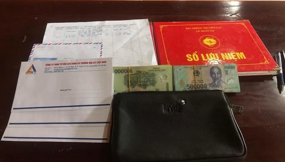 Chiếc ví cùng nhiều giấy tờ quan trọng và số tiền lớn mà anh Thanh nhặt được đã được trả lại người đánh rơi. |