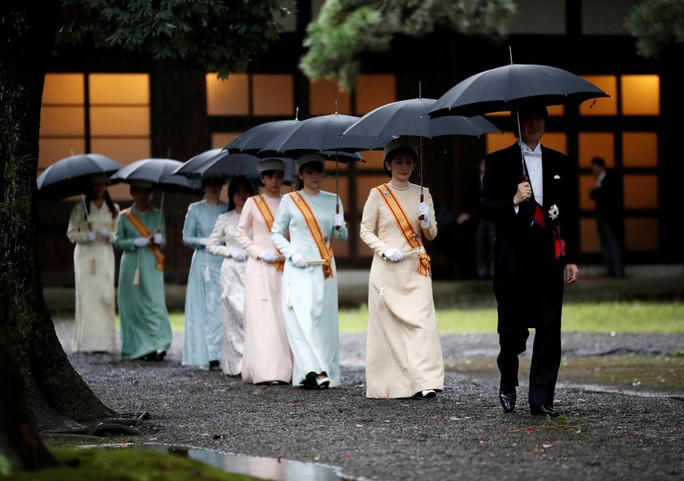 Nhật hoàng Naruhito bắt đầu các nghi lễ trong ngày ngay sau đó, báo cáo việc lên ngôi với tổ tiên của mình tại một trong ba ngôi đền trong khuôn viên cung điện.