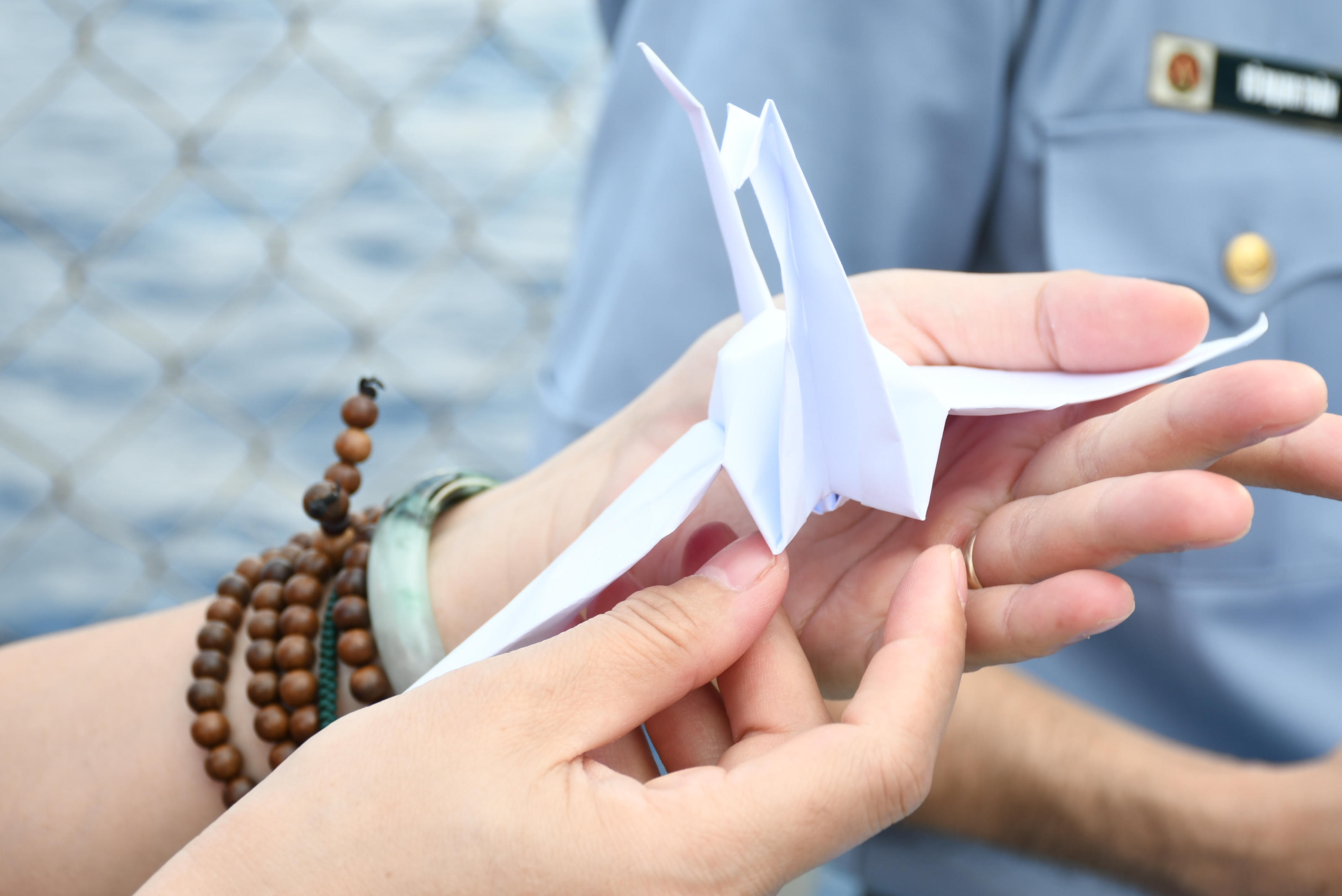 Đây là điểm nhấn đầy cảm xúc trong hành trình công tác tại Trường Sa. Ngay từ ngày đầu tiên bước chân lên con tàu KN 491, các thành viên trong đoàn đã cùng nhau thành kính gấp hàng ngàn cánh hạc giấy để chuẩn bị cho lễ tưởng niệm.