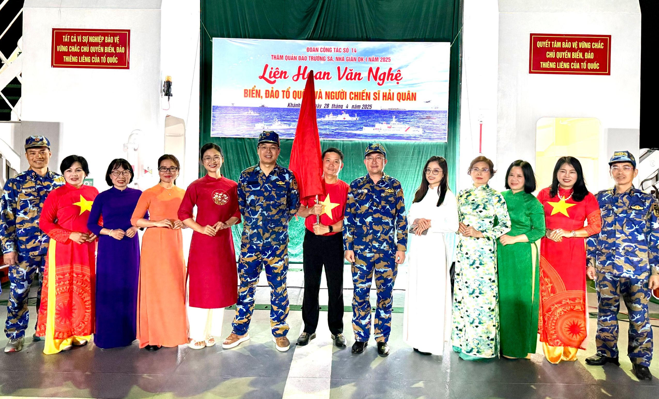 Kết thúc ngày công tác thứ 5, các thành viên trong đoàn đã có những giây phút bùng nổ niềm vui với phần thi văn nghệ “cây nhà lá vườn” do các đội thực hiện. Đêm giao lưu văn nghệ "Biển, đảo tổ quốc và người chiến sỹ Hải quân" khép lại bằng liên khúc ca ngợi tình yêu biển đảo, quê hương đất nước, ca ngợi Đảng, ca ngợi Bác. Bản “hợp xướng” được hơn 200 thành viên đoàn công tác cùng các cán bộ, chiến sỹ thực hiện trên boong tàu KN491. Những phút giây đặc biệt của ngày hôm đó chắc chắn sẽ mãi mãi khắc sâu trong ký ức của các thành viên của đoàn công tác số 14 - tàu Kiểm ngư KN491.