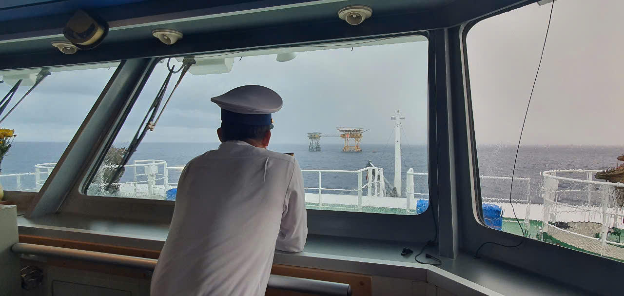 Giữa cơn sóng lớn, Đại tá Ngô Đình Xuyên - Phó Tham mưu trưởng Quân chủng Hải quân - Trưởng đoàn công tác - đứng lặng lẽ rất lâu trong buồng lái. Ông hướng mắt về phía nhà giàn, kiểm tra chi tiết về sức gió, mức sóng, độ đầm của các loại xuồng...