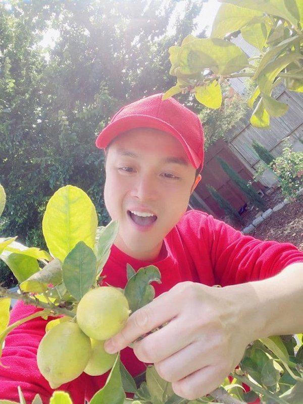 Mỗi dịp rảnh rỗi, anh thường dạo vườn, thu hoạch trái cây như táo, chanh, bí,.... Ngoài ra, khu vườn còn trồng rất nhiều hoa.