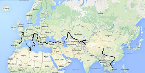 Bản đồ đánh dấu những nơi Matt đã đi qua trước khi đến Việt Nam.