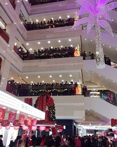 Trận chiến cãi vã kết thúc khi ông Tao vứt mớ túi xách xuống sàn và nhảy qua ban công tầng 7, rơi thẳng xuống sàn trung tâm. Người bên dưới hoảng sợ bỏ chạy tán loạn.