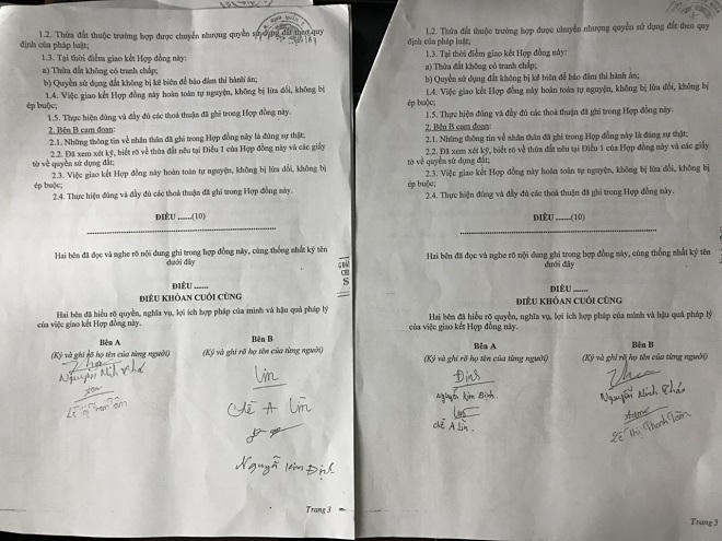Được biết những hộ dân trên chỉ đến nhà tên Thái thế chấp rồi nhận tiền bằng giấy viết tay, chưa hề lên xã hay văn phòng công chứng để làm thủ tục sang tên giấy chứng nhận quyền sử dụng đất, bên cạnh đó chữ kí chuyển nhượng hoàn toàn không đúng với chữ kí của người dân, thậm chí có người không biết chữ nhưng trong hợp đồng chuyển nhượng vẫn có chữ kí và họ tên rõ ràng. Người dân nghi ngờ liệu có sự tiếp tay của cán bộ xã trong việc chuyển nhượng GCNQSDĐ hay không?.