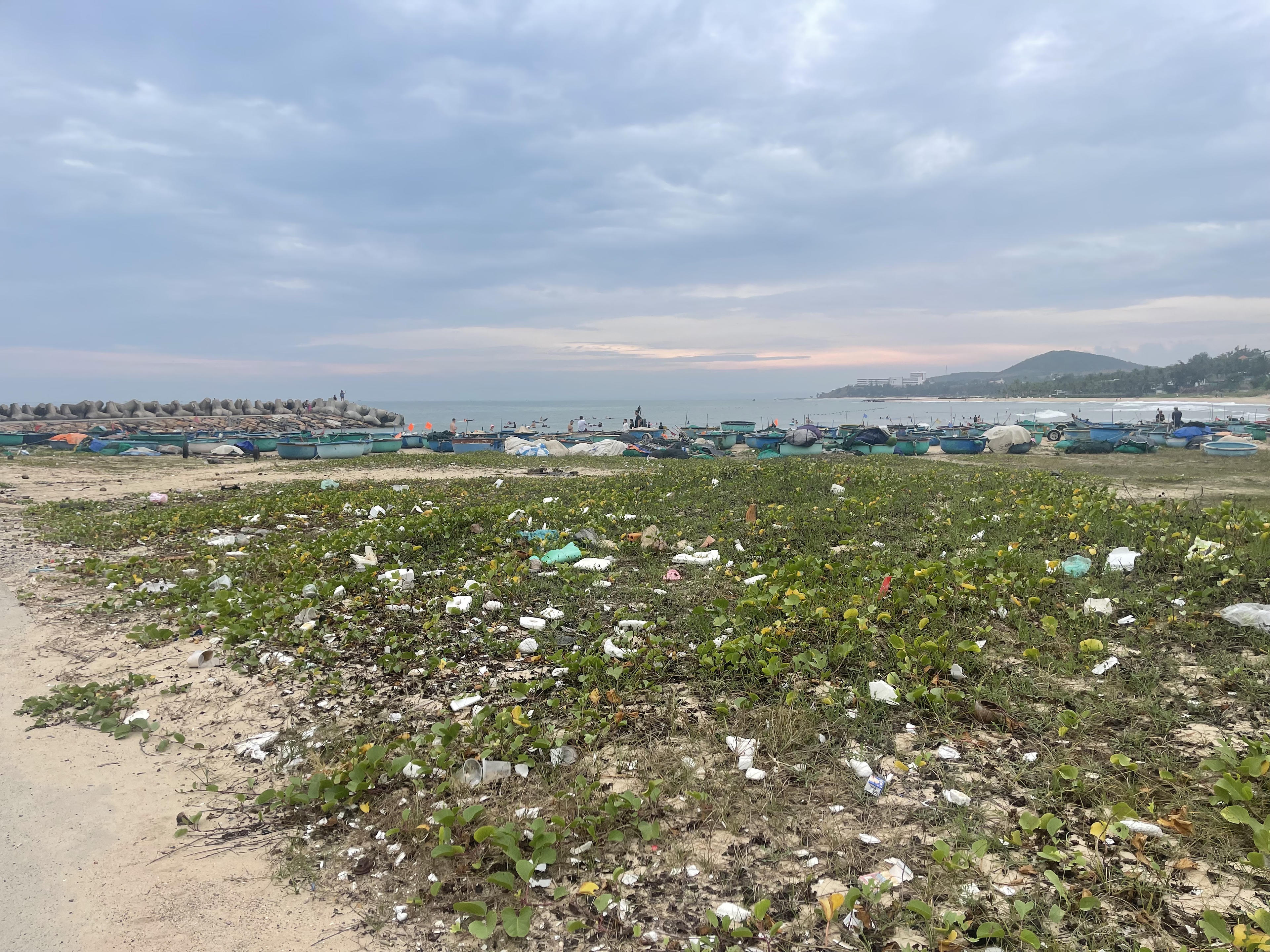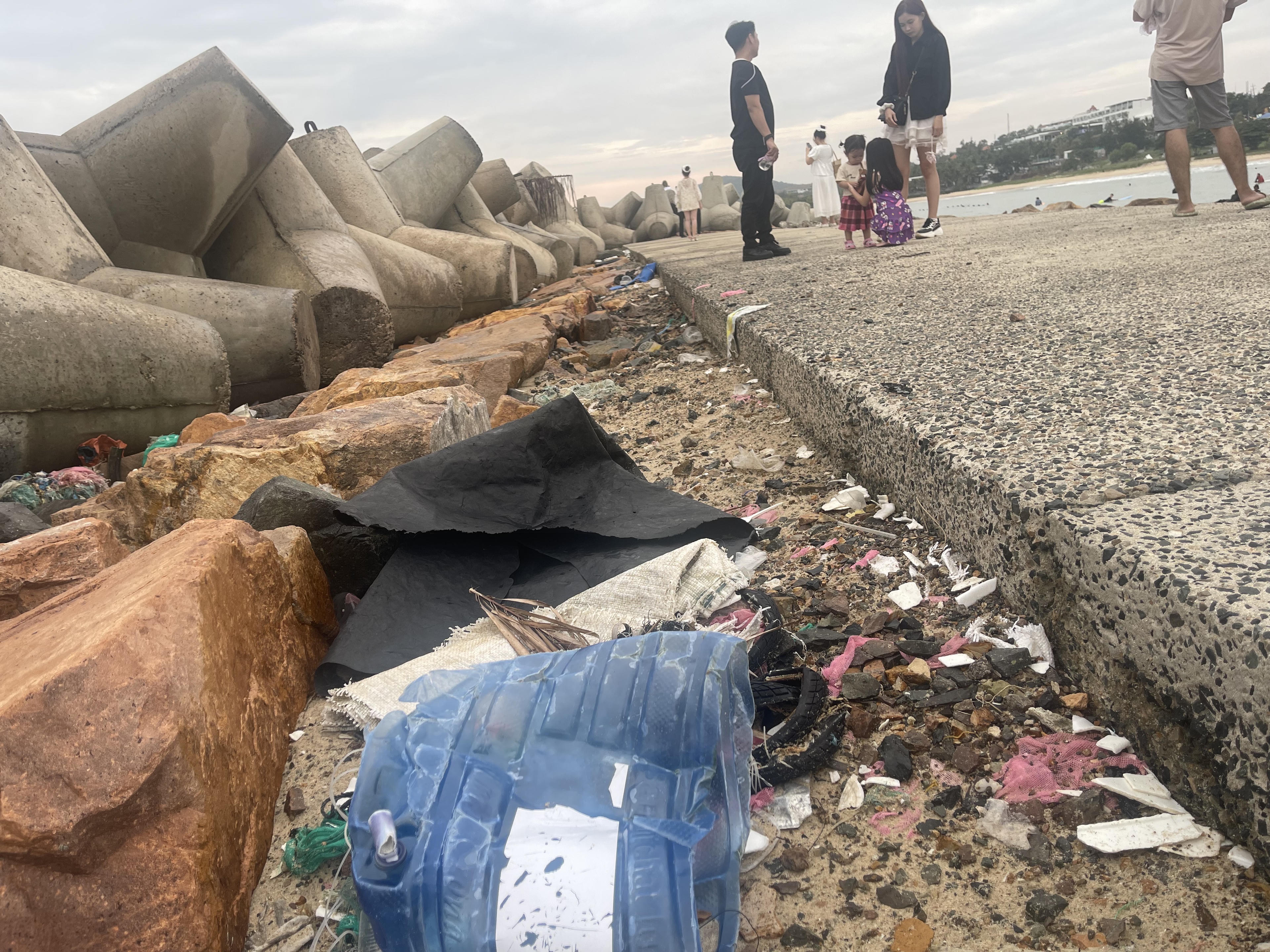 Chai lọ nhựa vứt khắp nơi ở Bãi Đá Ông Địa |