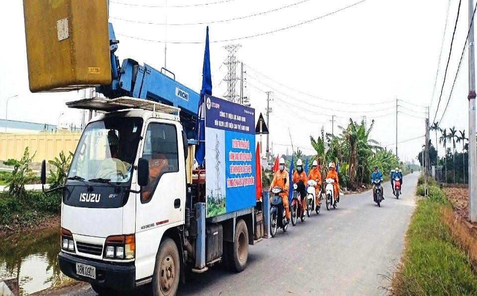 Đội quản lý vận hành cao thế- Công ty Điện lực Nam Định ra quân tuyên truyền bảo vệ hành lang lưới điện cao áp trên địa bàn các huyện. |