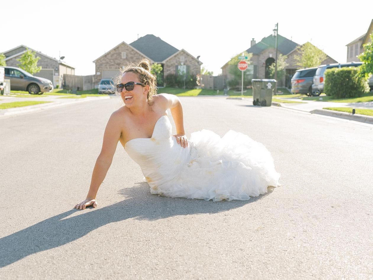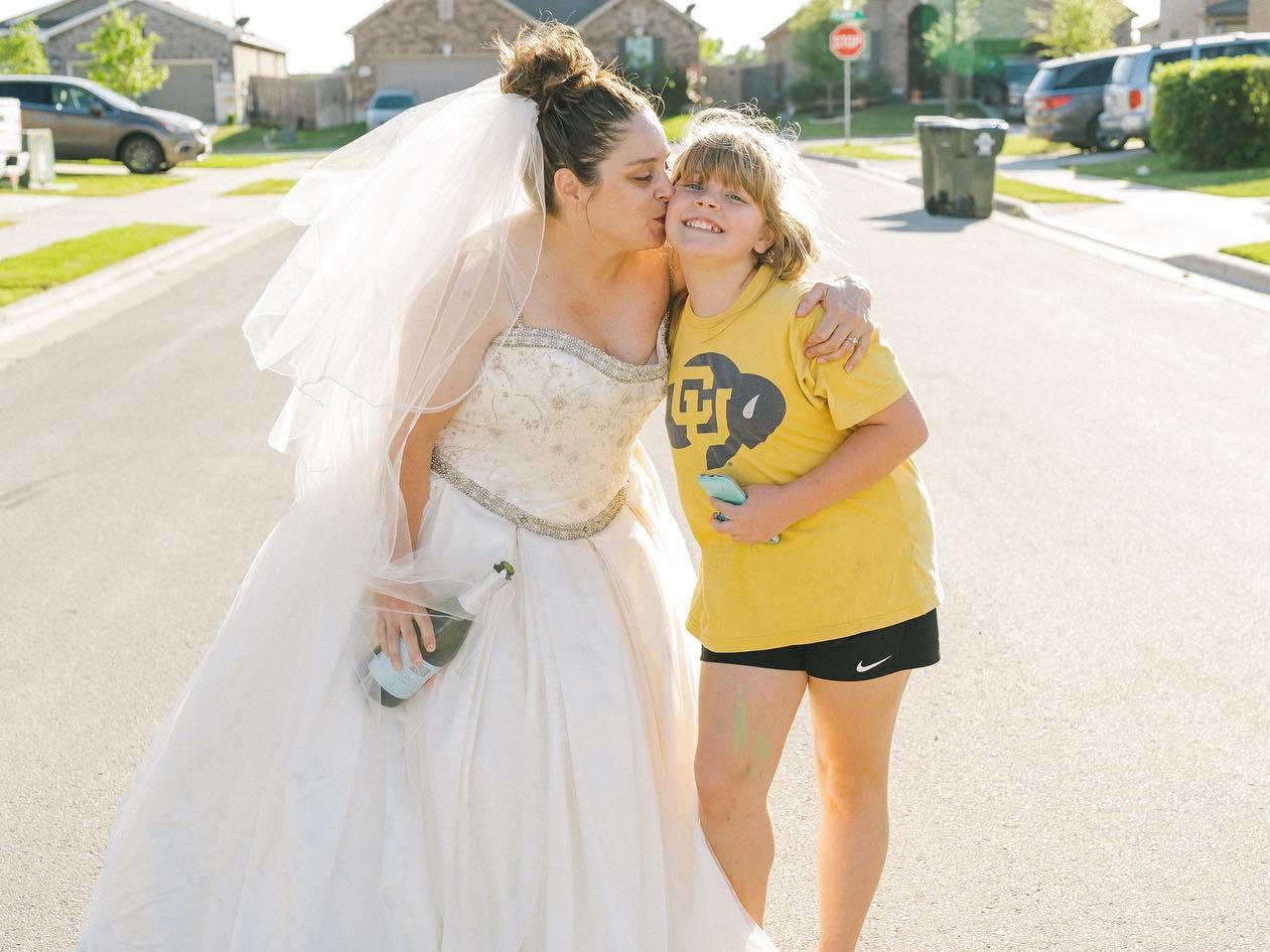 Để xua tan không khí ảm đạm, Seibel quyết định tổ chức một buổi chụp hình độc đáo cùng với những người bạn hàng xóm. Ý tưởng được nảy ra khi một mẹ bỉm sữa chia sẻ bức ảnh mặc váy cưới vào nhóm chat chung.
