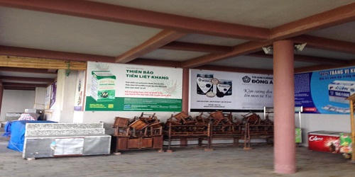 Theo ghi nhận của phóng viên có mặt tại khu danh thắng Yên Tử, hàng chục biển quảng cáo thực phẩm chức năng, rượu…in khổ lớn được treo cố định tại một số vị trí quanh nhà ga cáp treo trong khu di tích. Bên cạnh đó chỉ có một số ít pano giới thiệu về các hoạt động du lịch tại đây.