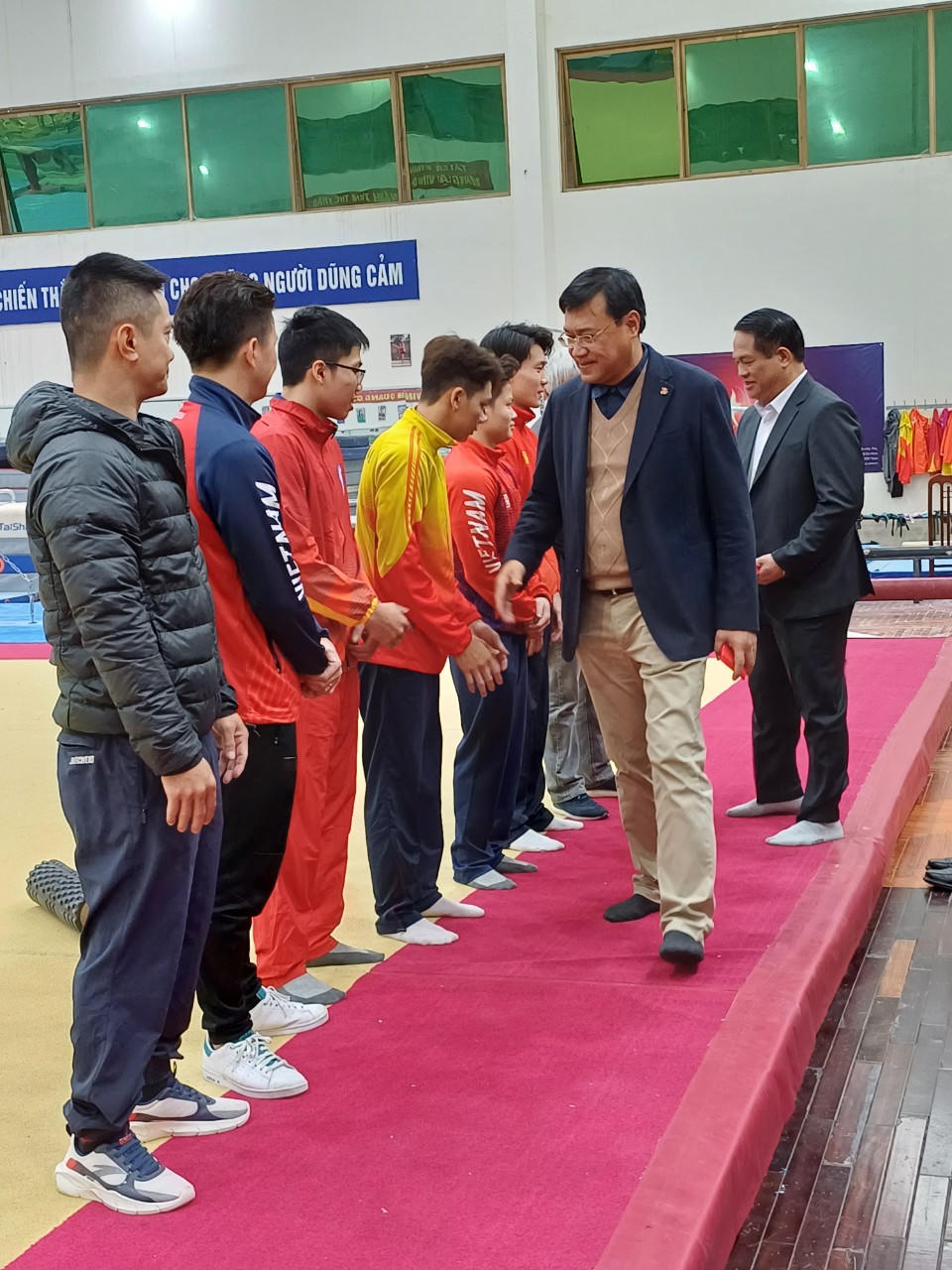 Sáng 12/2/2024 (mùng 3 Tết ) Cục trưởng cục TDTT Đặng Hà Việt, Giám đốc Trung tâm HLTT QG Nguyễn Mạnh Hùng cùng lãnh đạo các cơ quan liên quan đã lên thăm và chúc Tết đội tuyển TDDC nam Quốc gia đang tập huấn xuyên tại Trung tâm, không nghỉ Tết. Ngày mai (13/2), đội lên đường tham dự 2 giải Cup Thế giới tổ chức tại Ai Cập, sau đó ở Đức. Đây là giải đấu tích điểm vòng loại Olympic 2024.