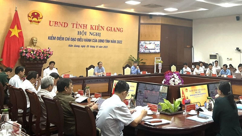 UBND tỉnh Kiên Giang mới tổ chức hội nghị kiểm điểm chỉ đạo điều hành của UBND tỉnh năm 2022, Chủ tịch UBND tỉnh Lâm Minh Thành chủ trì hội nghị.