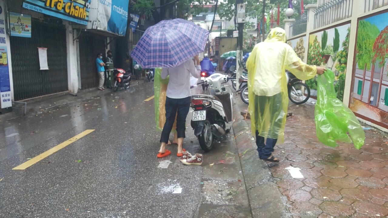 Bà Đặng Thị Thảo- Phó điểm trưởng phụ trách cơ sở vật chất đểm thi Trung tâm GDNN-GDTX quận Hoàng Mai cho biết khoảng 7h trời bắt đầu mưa rất to. Lực lượng hỗ trợ thi đã ngay lập tức lên phương án hỗ trợ thí sinh, mang ô ra tận cổng trường để hướng dẫn thí sinh vào phòng thi.
