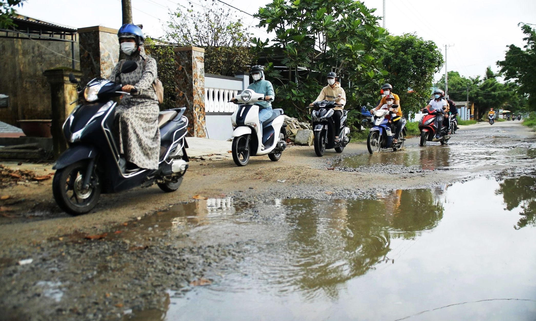 Ông Nguyễn Tuấn (55 tuổi, trú khối phố 5) cho biết, con đường 773 này vốn phẳng lỳ, không có một dấu vết của “ổ gà”, “ổ voi” nào cả. Thế nhưng, từ năm 2018, khi các dự án đô thị ở khu vực giáp ranh 2 phường Điện Nam Trung và Điện Dương đi vào xây dựng, một đoàn xe tải siêu trường, siêu trọng chở đất phục vụ dự án cũng bắt đầu hoạt động rầm rộ. Đỉnh điểm một ngày có khi mấy trăm lượt. Kể từ đó, mặt đường bị băm nát, bụi bặm mịt mù ai cũng thấy ngao ngán. Còn khi trời mưa, sình lầy khắp nơi, nước đọng thành vũng rất dễ gây tai nạn giao thông.