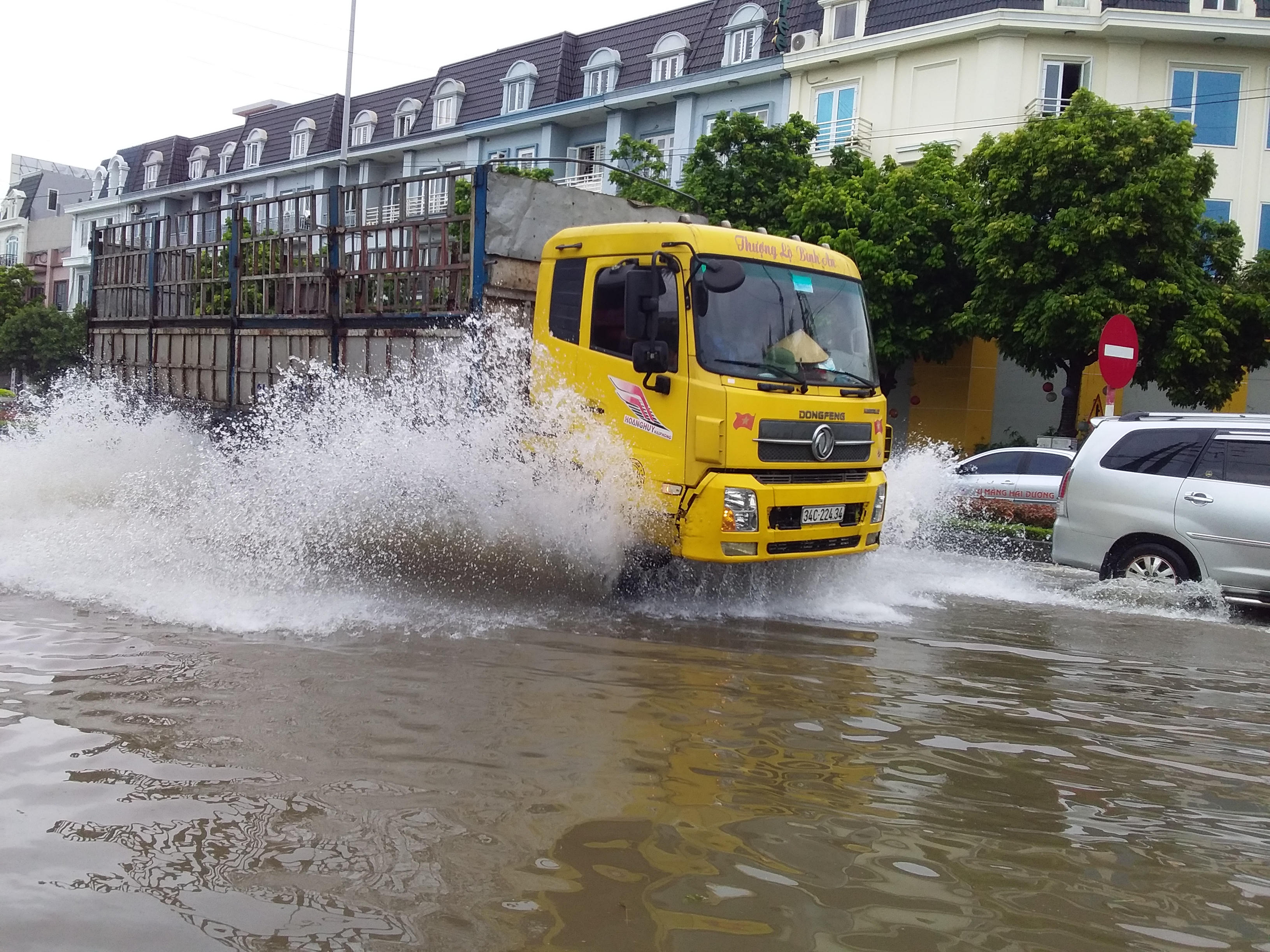Nhiều đường phố tại TP Hải Dương thành 'sông' sau mưa lớn