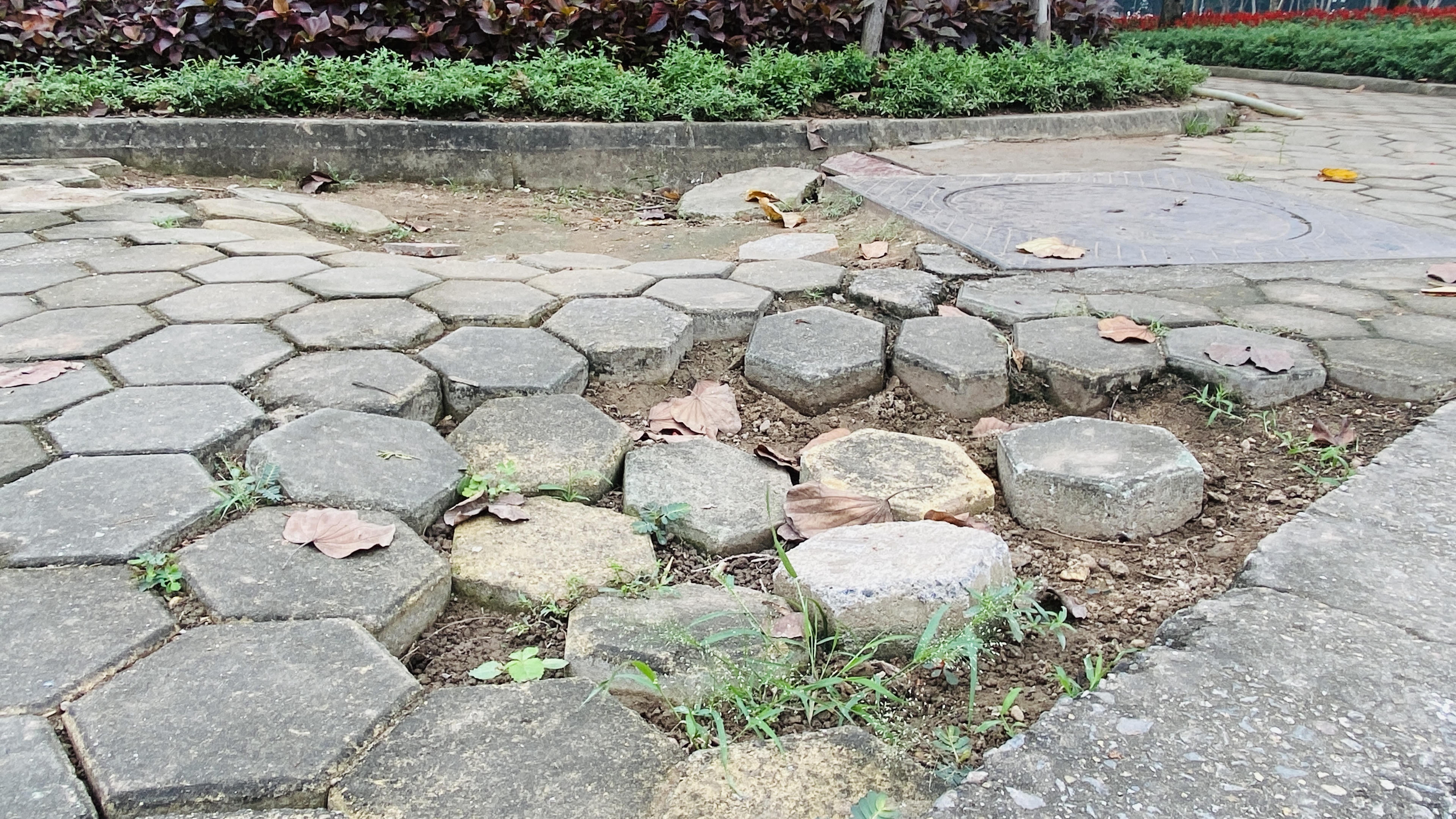 Hàng gạch lát đã vỡ dần theo thời gian.
