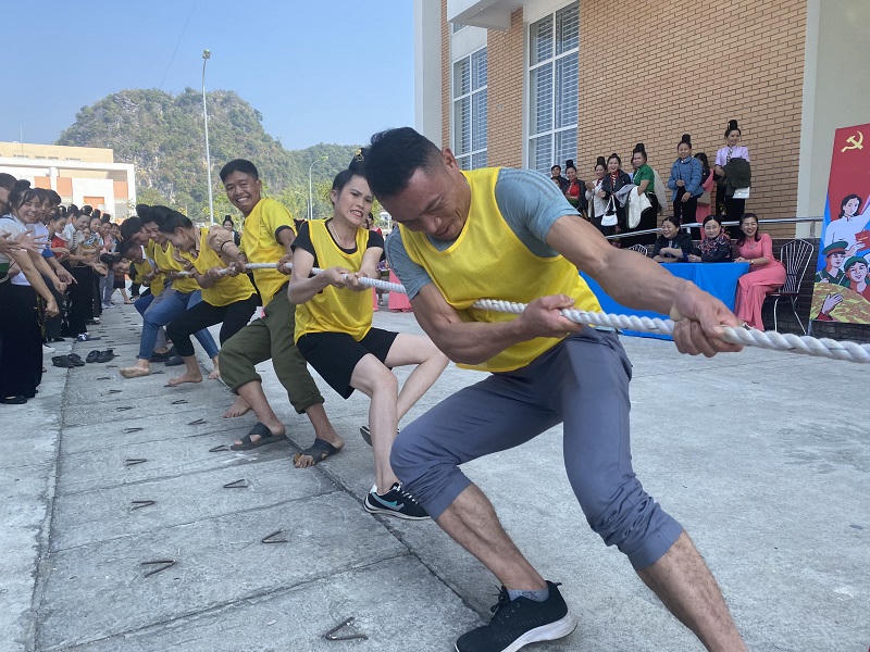 Các đội thi tham gia kéo co. |