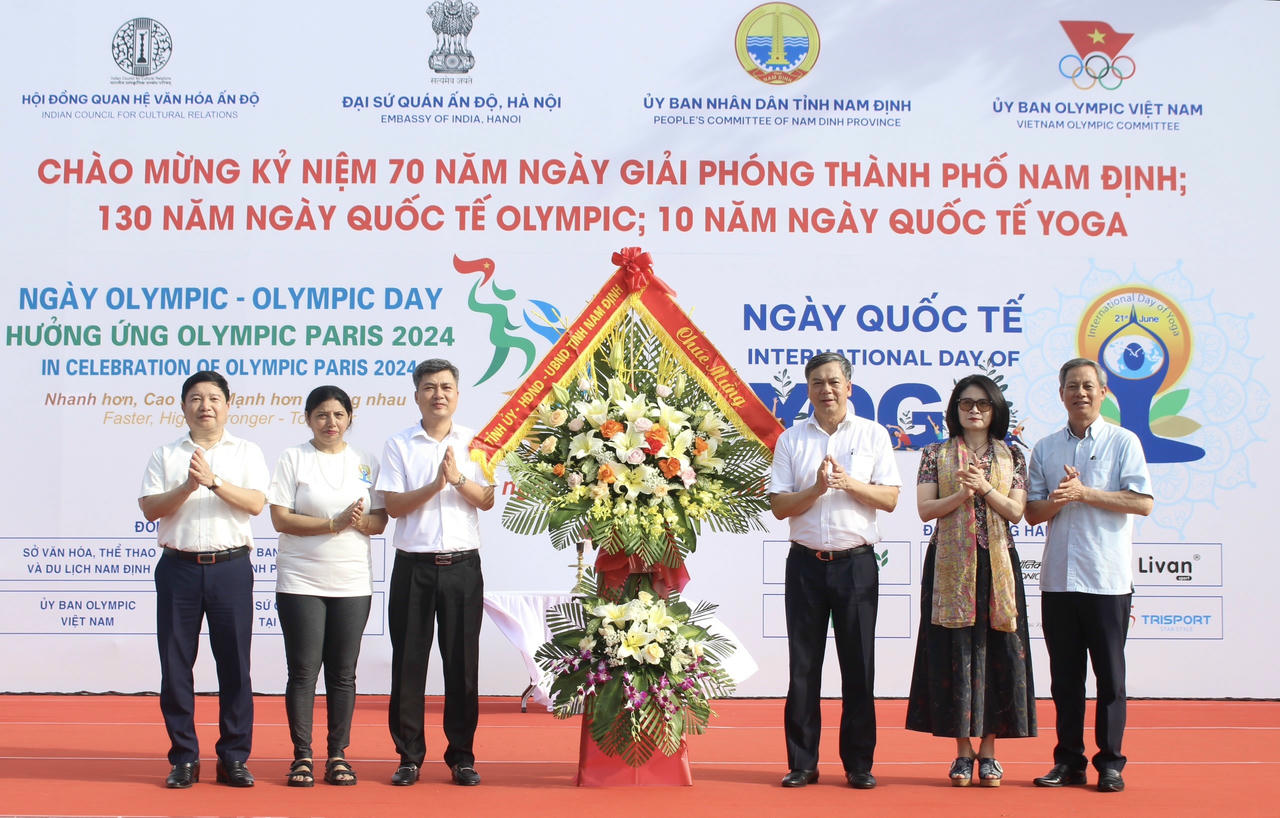 (PLVN) - Ngày 29/6, tại Quảng trường Hòa Bình, thành phố Nam Định, diễn ra Lễ khai mạc các hoạt động chào mừng kỷ niệm 70 năm Ngày Giải phóng thành phố Nam Định, 130 năm Ngày Quốc tế Olympic và 10 năm Ngày Quốc tế Yoga năm 2024.