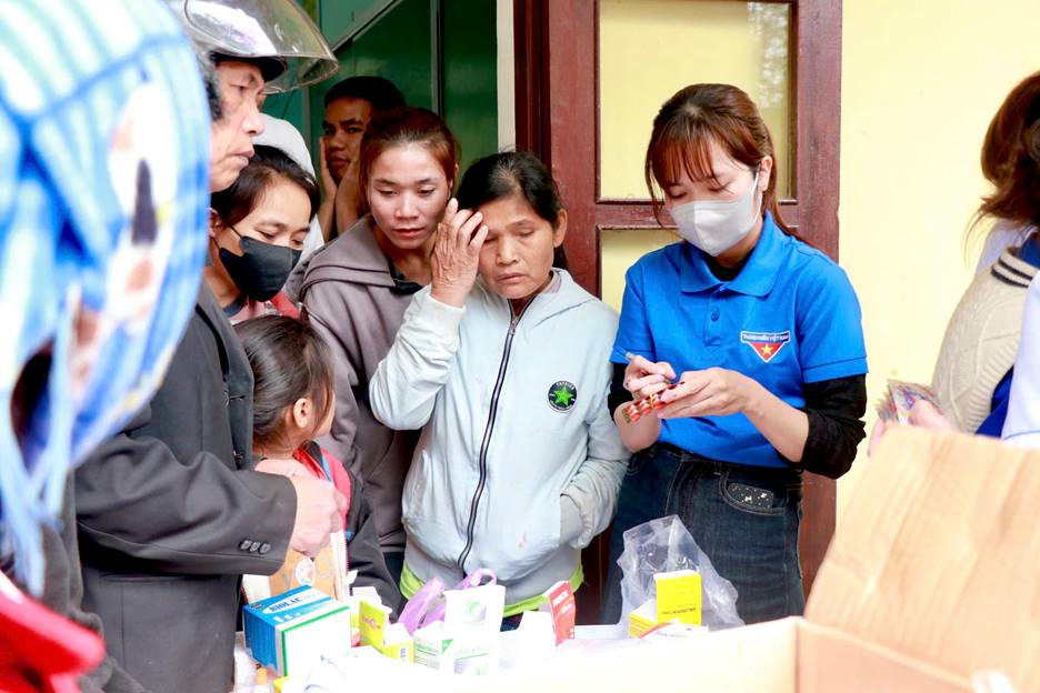 | Cấp phát thuốc miễn phí cho người dân xã biên giới Trường Sơn. |