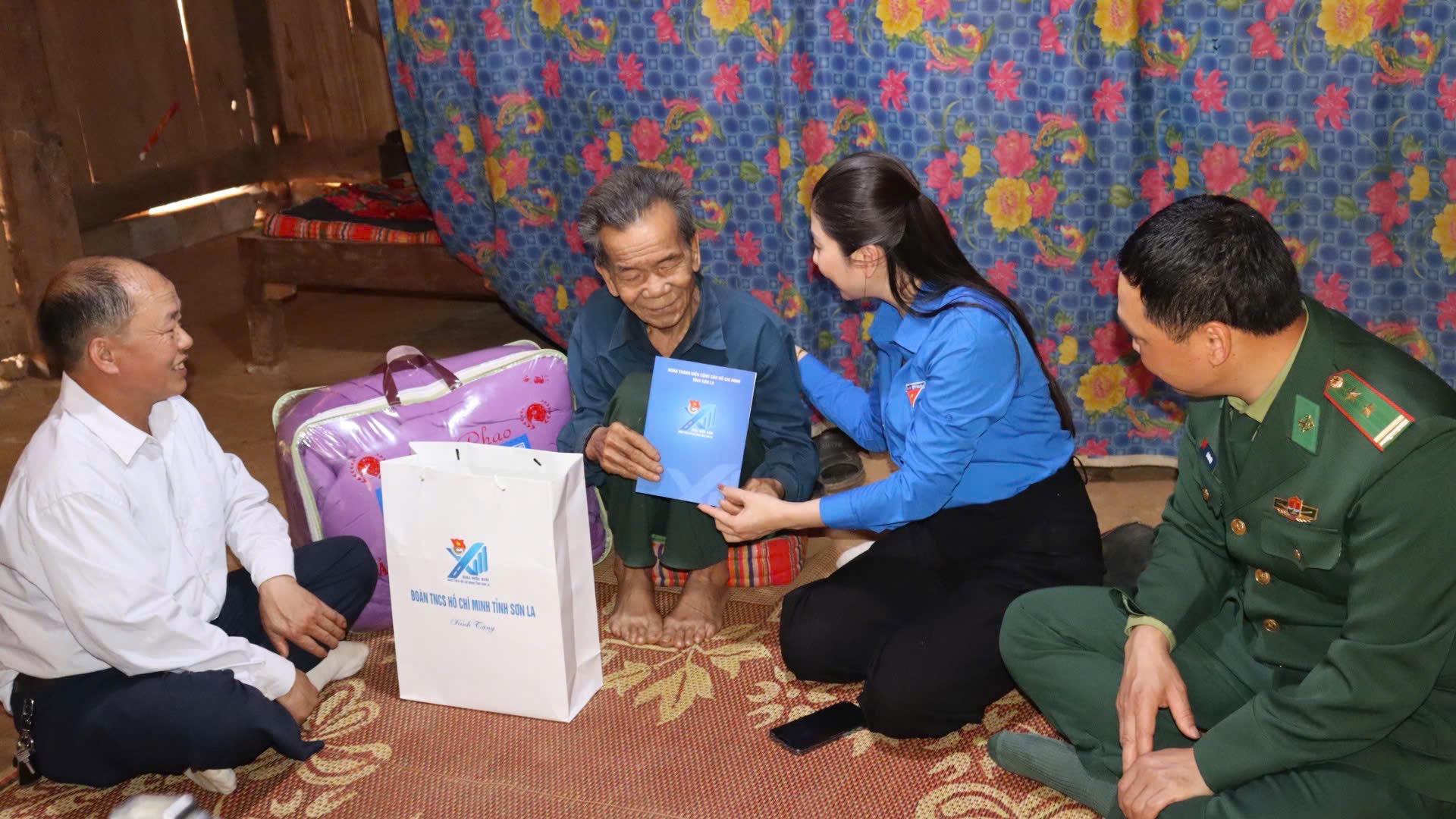 Bà Cầm Thị Huyền Trang, Uỷ viên Ban Thường vụ Trung ương Đoàn, Tỉnh uỷ viên, Bí thư tỉnh đoàn Sơn La tặng quà cho người dân. |