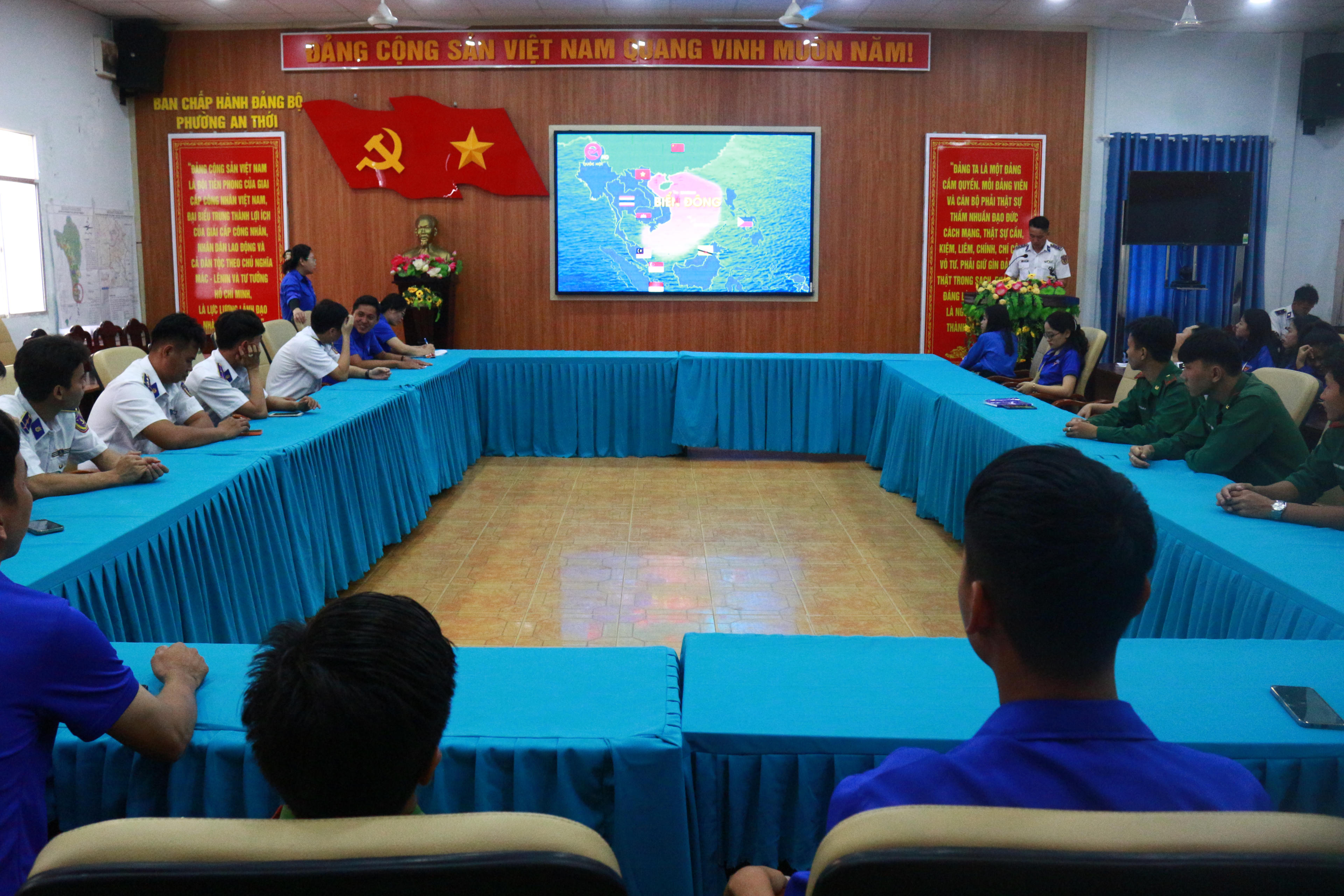 Cán bộ Đoàn cơ sở Hải đội 401 tuyên truyền biển, đảo cho đoàn viên, thanh niên trên địa bàn phường An Thới, Phú Quốc |