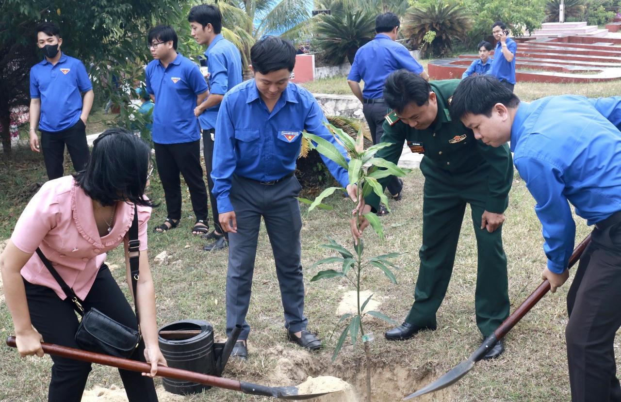 | Tuổi trẻ Bình Định trồng cây ăn quả tại Đồn Biên phòng Mỹ An. |
