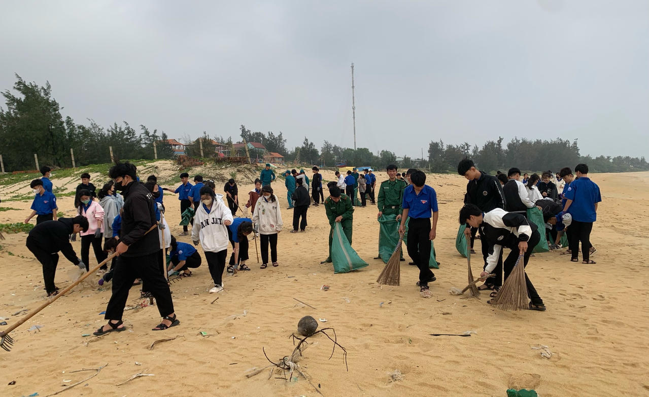 | Đoàn viên, thanh niên Bình Định ra quân làm sạch biển tại xã Mỹ An. |