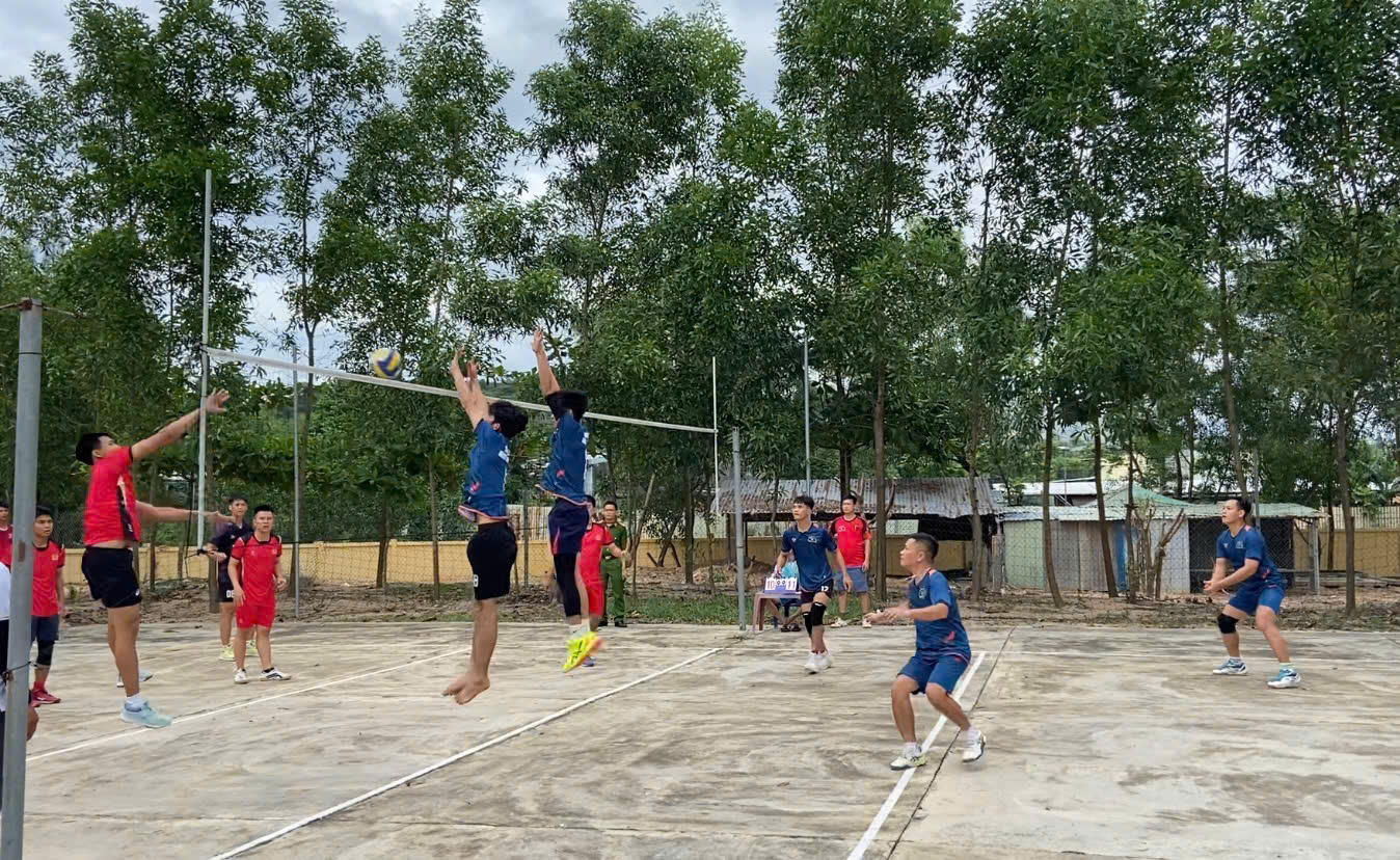 Thi đấu bóng chuyền tại Hội thao chào mừng 15 năm thành lập Trung đoàn. |