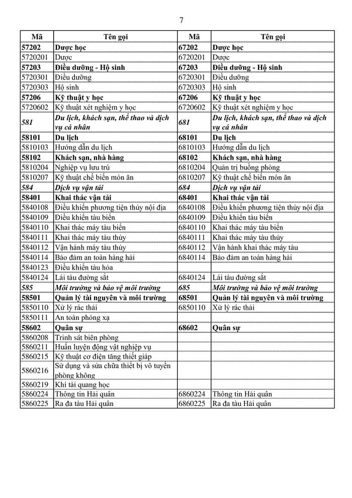Nhóm ngành dịch vụ vận tải gồm: Điều khiển phương tiện thủy nội địa; Điều khiển tàu biển; Bảo đảm an toàn hàng hải; Vận hành khai thác máy tàu…