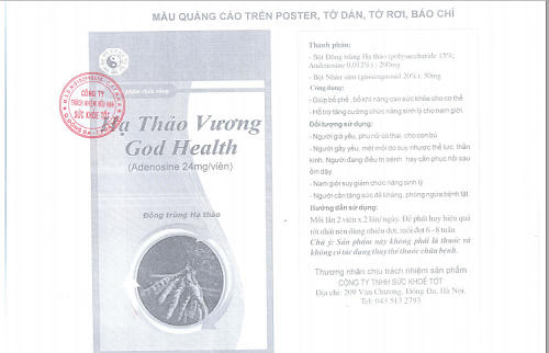 Tuy nhiên, trên vỏ hộp Hạ Thảo Vương, Công ty TNHH Sức khỏe Tốt, lượng Adenosine trong mỗi viên lại được ghi là 24mg, tăng hơn 1000 lần so với công bố của sản phẩm (?!)