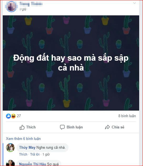 Một số người dân sống tại huyện Quỳ Hợp và TX Thái Hòa đều cảm nhận được dư chấn, hết sức lo lắng đã chia sẻ lên mạng xã hội. Nhiều người cho rằng, “cảm giác rung lắc như sắp sập”, có người cũng cảm nhận được nhiều đồ vật rung lắc. Một số người hốt hoảng ôm con chạy ra ngoài.