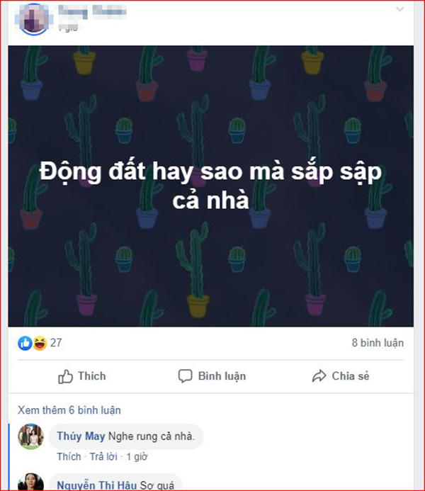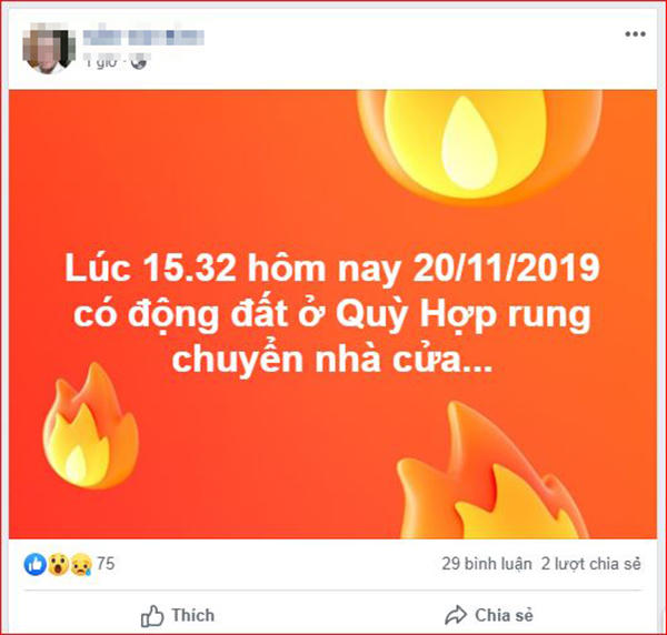Theo đó, thời điểm trên, một trận dư chấn mạnh kéo dài khoảng 4-5 giây, kèo theo đó là tiểng nổ lớn, nghi là động đất đã diễn ra nhiều nơi ở các huyện như Tân Kỳ, Quỳ Hợp, Thái Hòa...