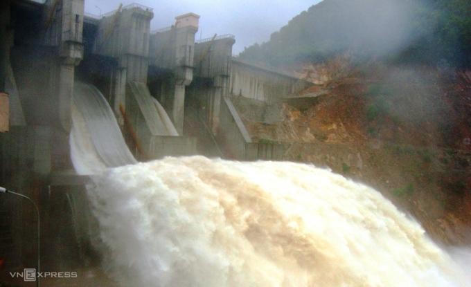 Thuỷ điện Hương Điền đang xã lũ. Ảnh: Võ Thạnh