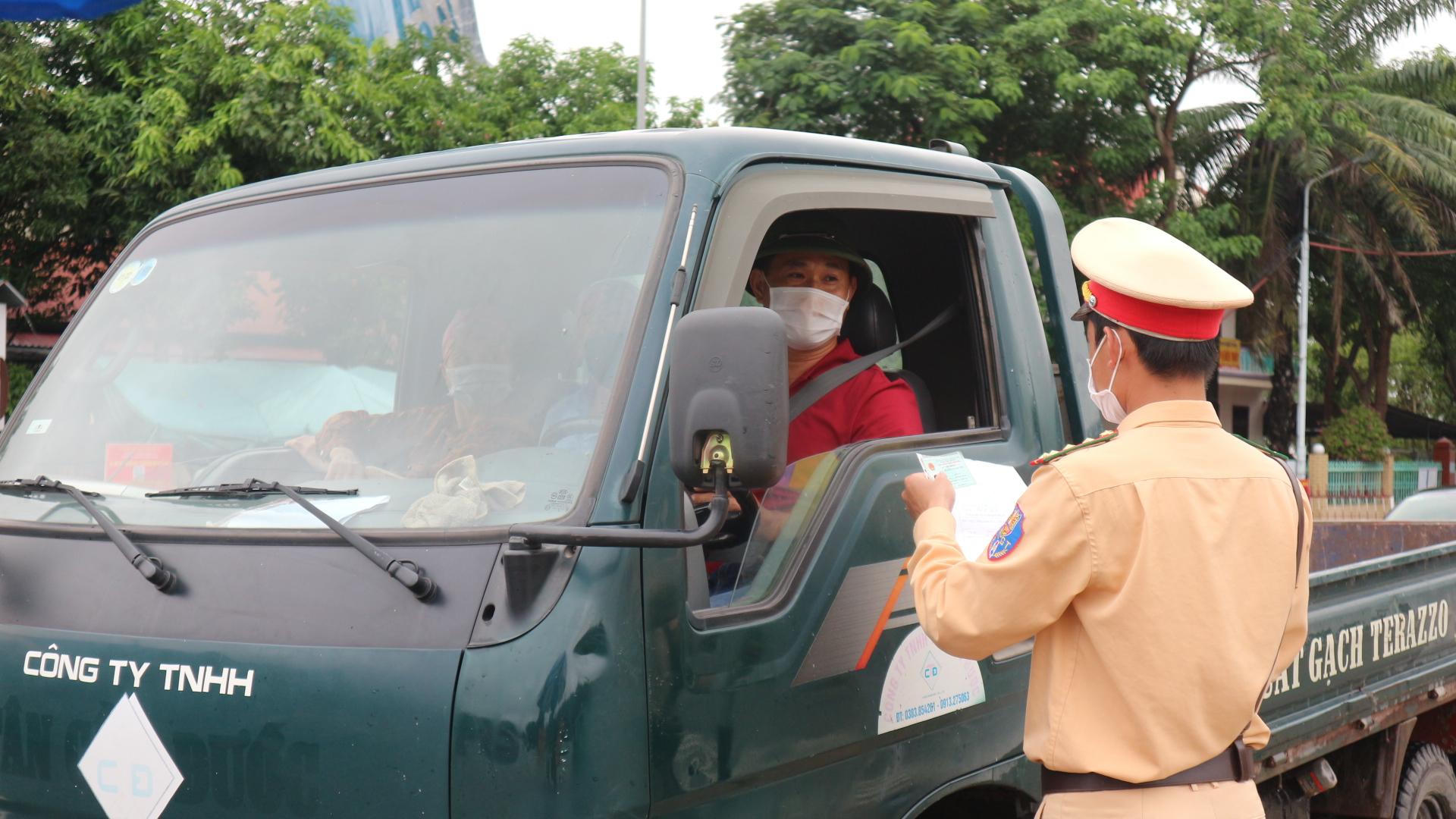 Một chiến sĩ cảnh sát giao thông trực chốt tại trạm thu phí cầu Bến Thủy 1 cho biết, do chưa có hướng dẫn nên phải thực hiện theo quy định cũ, yêu cầu người chưa tiêm hoặc tiêm 1 mũi vaccine phải có giấy xét nghiệm.