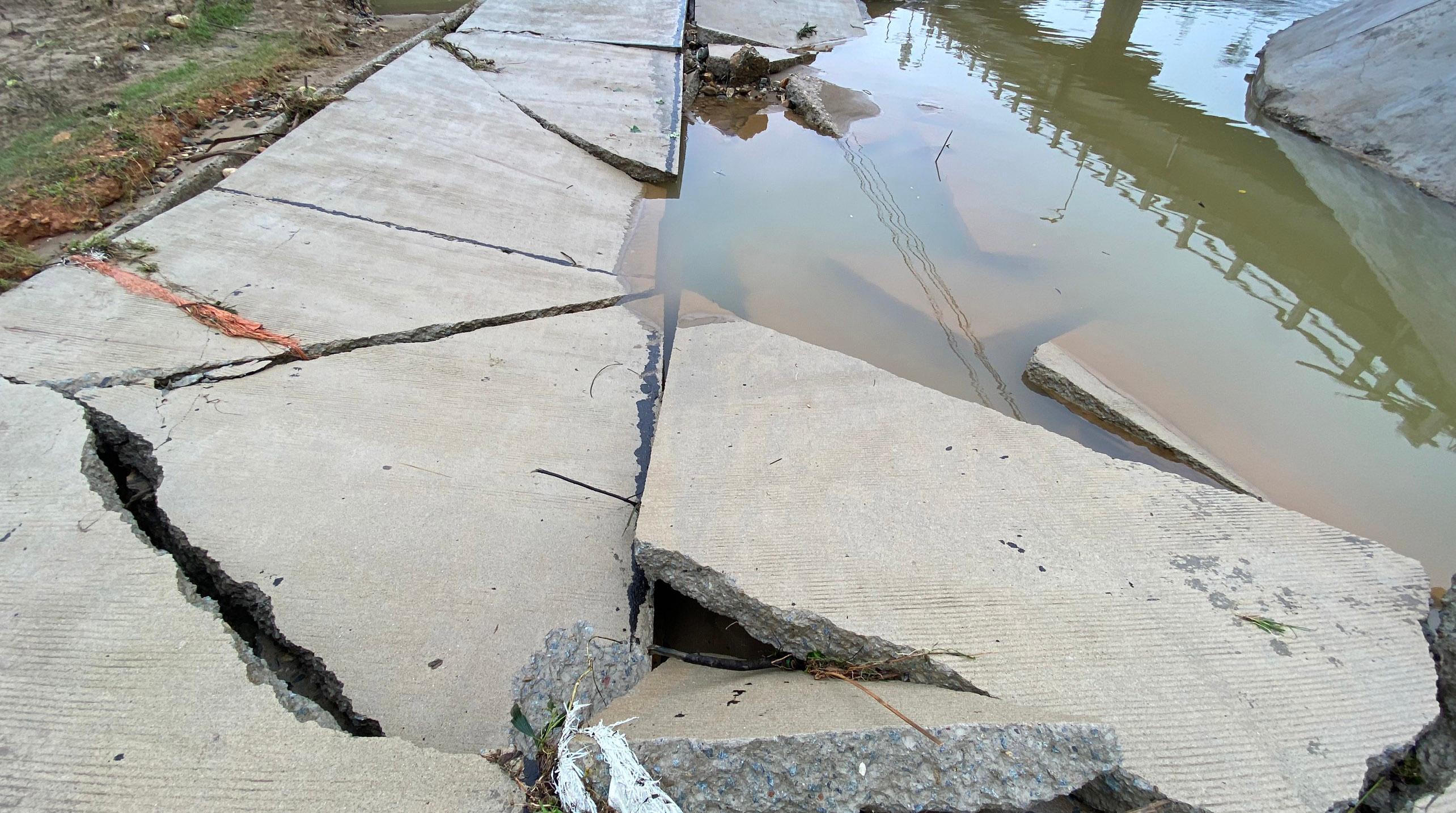 Đoạn đường tràn kết hợp với cống thoát nước bị sụt lún, nứt gãy nghiêm trọng. |