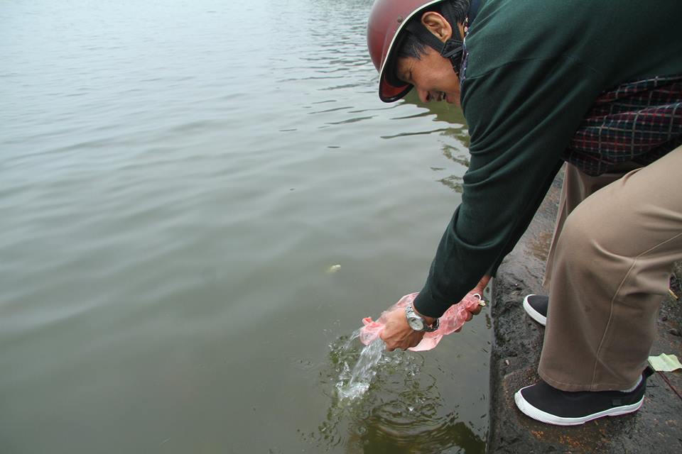 "Được một số tổ chức, hiệp hội đứng ra tổ chức hàng năm, bọn mình tham gia chương trình này nhằm mục đích nâng cao nhận thức của người dân trong việc bảo vệ môi trường. Hà Nội có biết bao nhiêu sông, hồ để thả cá trong ngày Tết ông Táo. Ai cũng thả cá rồi thả cả túi nilon xuống thì sẽ gây ô nhiễm môi trường. Thậm chí có người chỉ mở túi ra mà quăng cả cá và túi xuống, cá có thể không ra ngoài được, thế thì ông Táo sao mà chầu Trời được" - Bạn Thùy Linh - Thành viên nhóm tình nguyện viên dí dỏm chia sẻ.