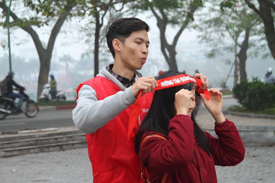 Những chiếc dây ruy-băng "Đường Táo quân được các bạn trẻ trong nhóm tình nguyện quấn quanh để nhằm tuyên truyền tốt hơn cho chiến dịch này.