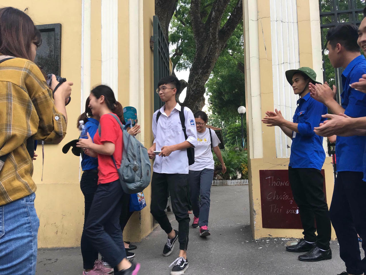 | Các sĩ tử vui vẻ sau khi kết thúc bài thi môn toán tại điểm thi THPT Đống Đa |