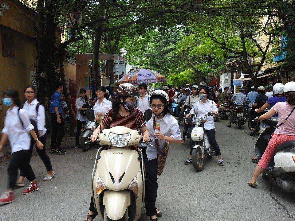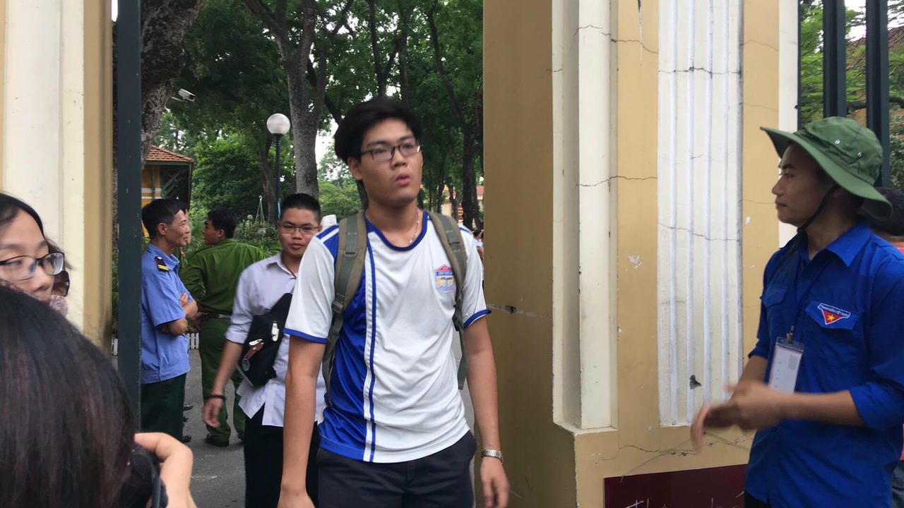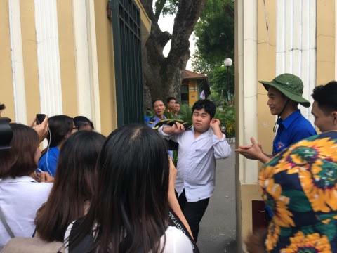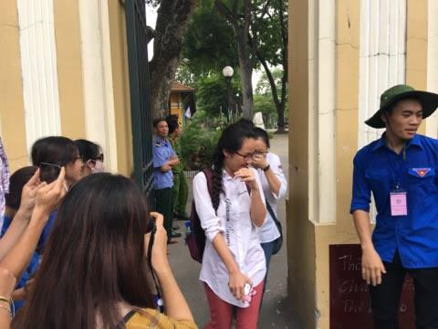 | Nhiều sĩ tử tại điểm thi THPT Chu Văn An cho biết đề thi toán năm nay dễ hơn đề thi thử nhưng nhiều bạn cũng chỉ làm được khoảng 60% |