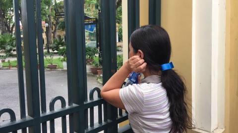 | Một phụ huynh chờ con thi tại điểm trường THPT Chu Văn An |