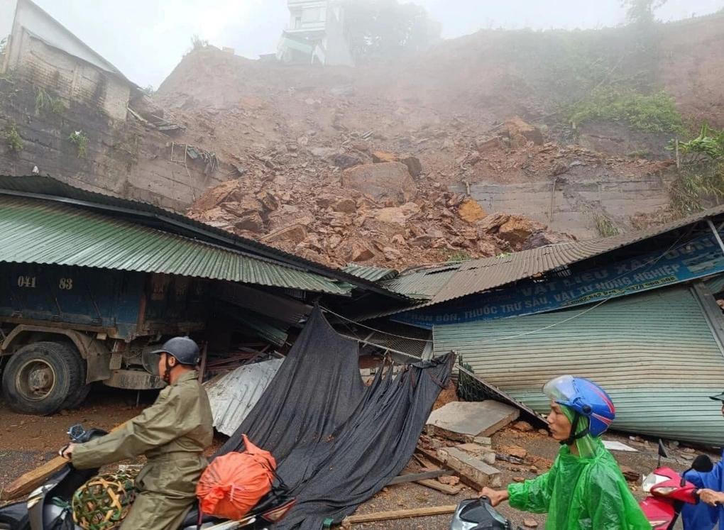 Tại Hà Giang, một vụ sạt lở taluy xảy ra ở thị trấn Cốc Pài, huyện Xín Mần. Cụ thể, đất đá từ taluy cao khoảng 15m sạt lở xuống đè bẹp một nhà kho, phía trên taluy là một nhà dân xây kiên cố cũng bị ảnh hưởng.