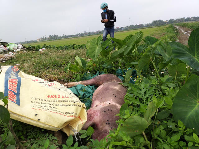 Lợn chết do dịch LMLM bị vứt la liệt các bãi rác, kênh, mương ở một số nơi của huyện Bình Lục (Hà Nam). Ảnh: Trần Quang