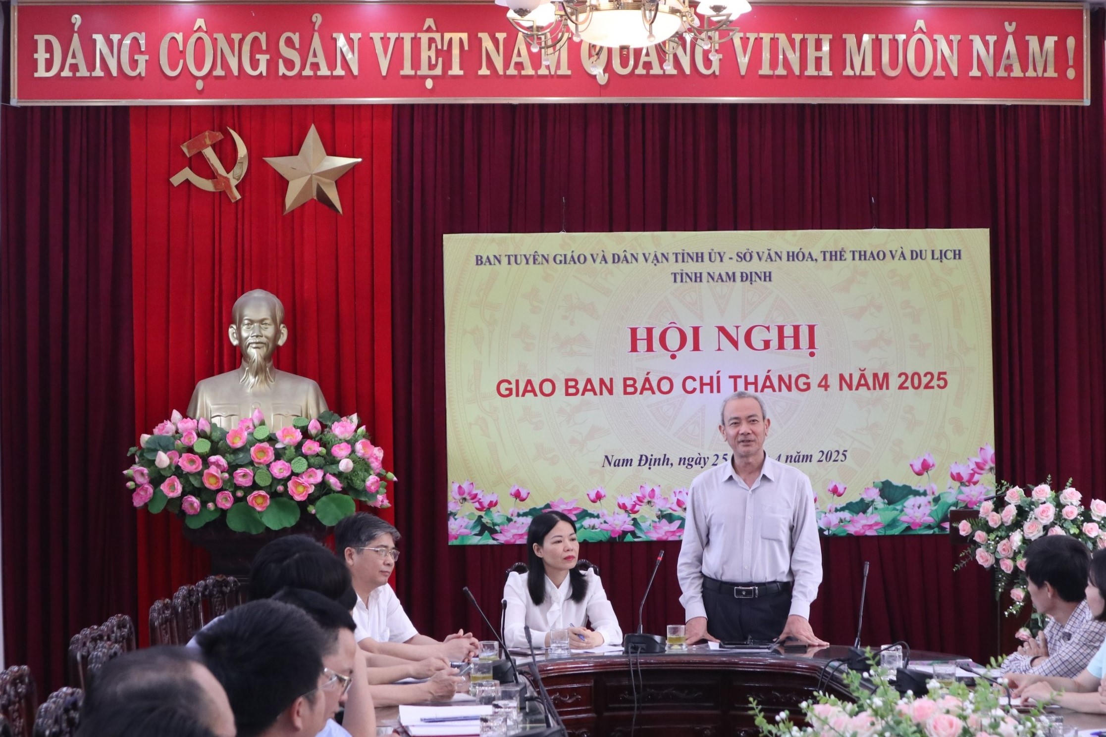 Chiều 25/4, Ban tuyên giáo và Dân vận tỉnh ủy phối hợp Sở VHTT & DL tỉnh Nam Định tổ chức giao ban báo chí tháng 4 năm 2025, nhằm thông tin Đề án sắp xếp đơn vị hành chính cấp xã trên địa bàn tỉnh.