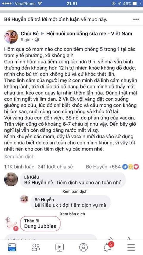 Những chia sẻ về thông tin vắc xin mới ở các hội nhóm về chăm sóc con nhỏ các mẹ đều tỏ ra lo lắng và không biết nên tiêm vắc xin trong chương trình mở rộng hay cố đưa con lên Hà Nội tiêm dịch vụ.