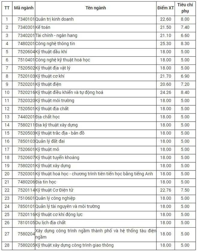 Hội đồng tuyển sinh Trường Đại học Mỏ - Địa chất công bố điểm trúng tuyển đại học hệ chính quy năm 2021 xét tuyển theo kết quả học bạ đợt 1.