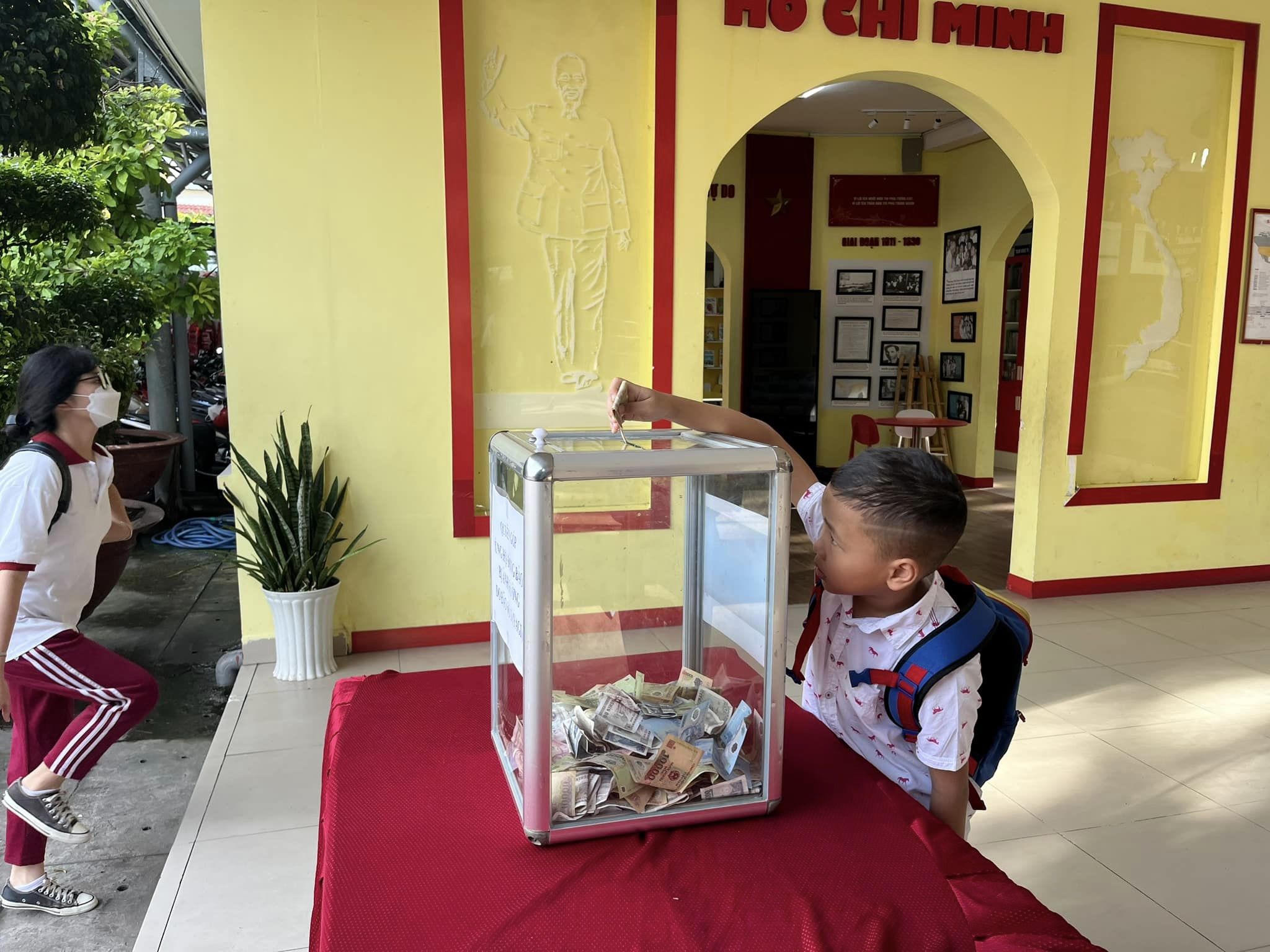 Nhiều học sinh dù nhỏ tuổi vẫn tham gia phong trào ủng hộ của nhà trường. |